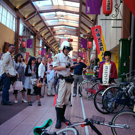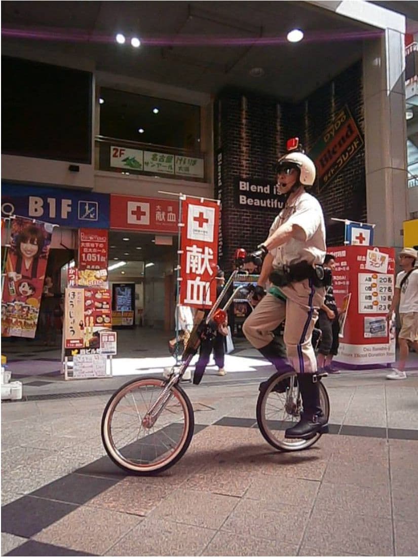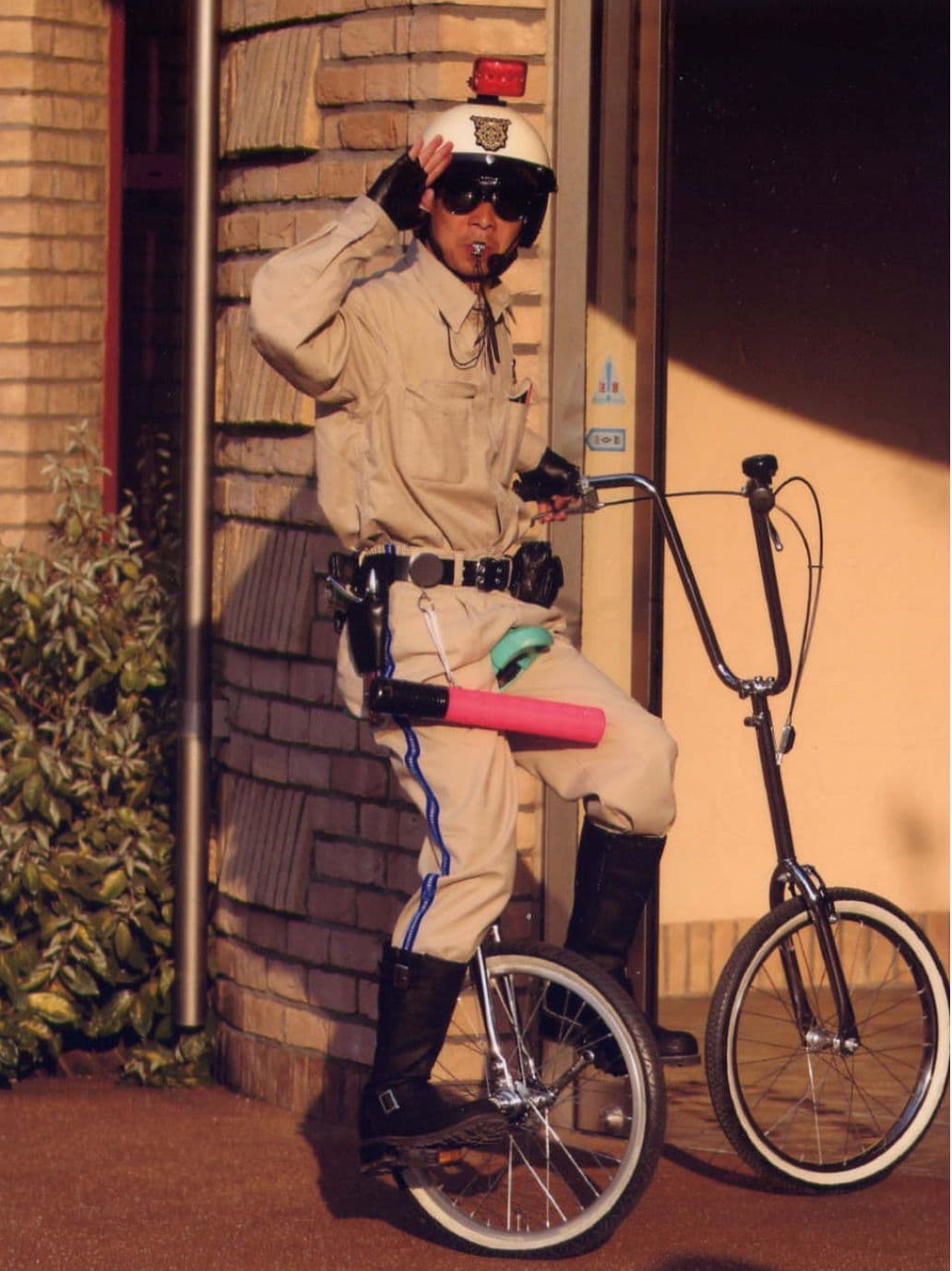 2台の一輪車からなる愛車「ハーレー チョビットソン」に乗ったユニコップ。あなたの街の治安を守る為、パトロールを行います。お客様のベビーカーや買い物カートに駐禁キップを切ったり、金属探知機などの道具を使い、コミュニケーションを笑いに変えて行きます。